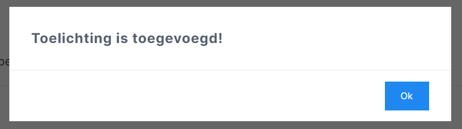 Na het opslaan van het formulier moet je deze melding eerst krijgen.