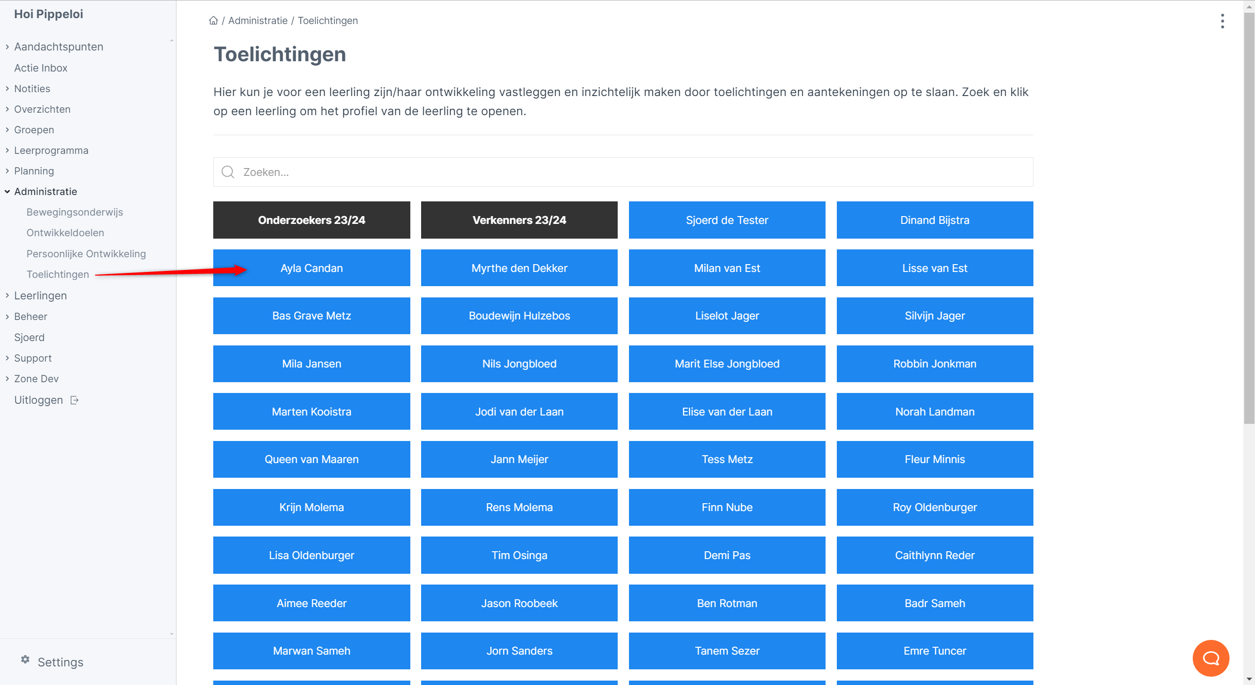 Onder bekijk toelichtingen kun je het incident wat je hebt aangemaakt vinden. Incidenten met een blauw deel icoontje zijn nog niet door de leerling voorzien van een ingevuld gog formulier.